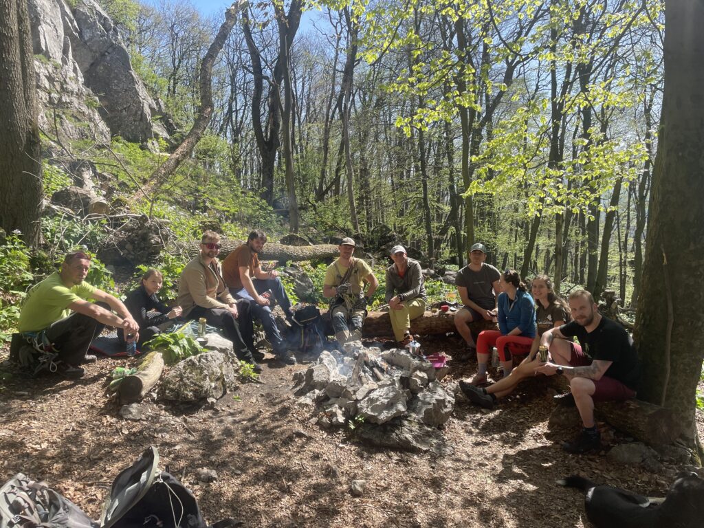 V sobotu, 18.4.2026 prebehlo za pomerne širokej účasti našich členov čistenie skál. Správca Havranej skaly bol nekompromisný a zavelil do roboty. Sám šiel vzorom a s prácami začal už v piatok poobede. Na túto činnosť sa mu podarilo nahovoriť aj dvoch pomocníkov, Kuba so Stanom. Spoločnými silami sa im v piatok podarilo vyrobiť lavičky ale aj zrovnať plochu pod skalou. Tam dokonca neskôr zasiali nový golfový trávnik (možnosti športového vyžitia na Havranici sa týmto opäť rozšíria!). V sobotu ráno sa k uvedenej trojici pripojili ďalší členovia, menovite: Tomáš 2, Lea, Filip, Mišo, Martin, Mišo 2, Veronika, Barbora, Stanka, Zuzka, Dávid a Darina. Spusty sa realizovali cez väčšinu lezených ciest, vyhodilo sa veľké množstvo uvoľnených kameňov, vytrhala burina, skontrolovalo istenie. Všetko toto urobí lezenie na „našej“ skale bezpečnejšie a príjemnejšie!